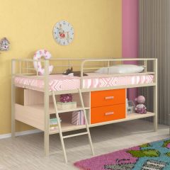 Кровать-чердак "Дюймовочка-4/3" рассчитана на двоих детей, так как объединяет два полноценных спальных места. Выдвижная нижняя кровать может устанавливаться в удобном положении для сна в ночное время и убираться в дневное время. Под кроватью имеется ящик для белья и открытые ниши. В лестнице предусмотрены выдвижные ящики для хранения вещей. Такой уголок экономит пространство в детской комнате. Кровать подойдет детям от 2 до 18 лет.
